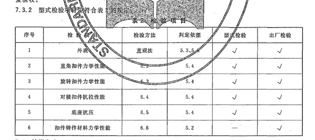 外觀、抗滑移性能、抗破環(huán)性能、扭轉(zhuǎn)剛度性能、抗拉性能、底座抗壓性能、扣件鑄件材料力學性能。