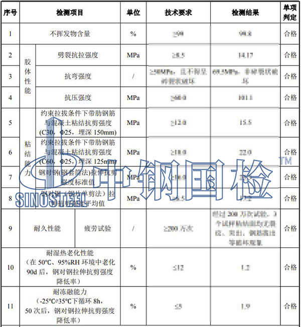 涵蓋錨固膠的物理性能、力學性能、粘結性能、耐久性能等多個檢測項目。